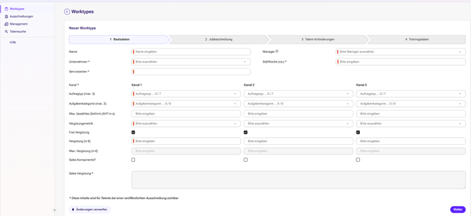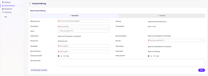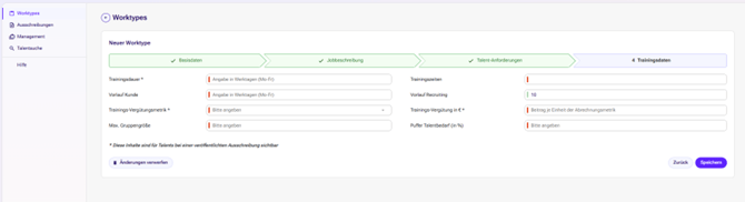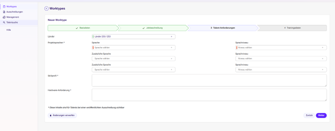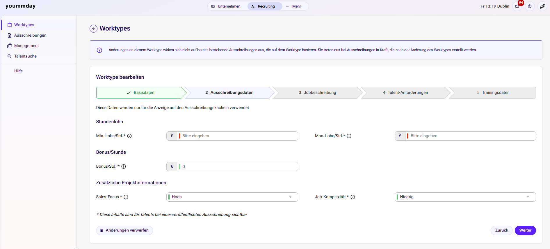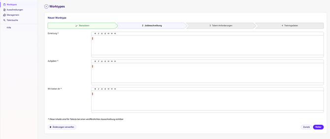 ➡️ Diese Werte werden für die Anzeige der Ausschreibung und später für Talente sichtbar.