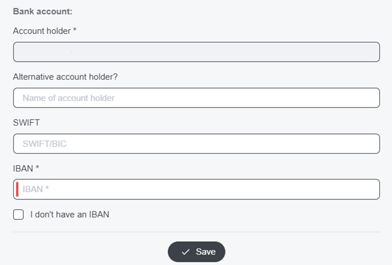 Providing your bank details is an important step in setting up your account. We can only pay you your remuneration on time if you have provided us with correct bank details. You are always responsible for ensuring that your details are complete and correct. If there are any changes, please update your account information promptly.