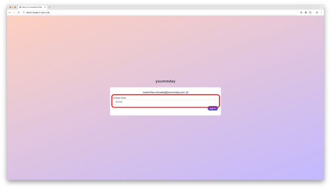 On the 31st of Juli 2025 we changed the 2FA method: There will be no more verifications using your mailaddress, instead the same code that's valid for on the talent.yoummday platform can be used. Therefore, there will only be one authentication app going forward!