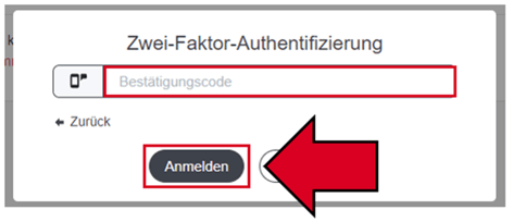 Gib den Code im Feld „Bestätigungscode“ ein und klicke auf den Button „Anmelden“: