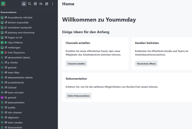 Das Chat Widget erlaubt es Dir, über die yoummday-Plattform direkt zum Rocket.Chat zu navigieren.