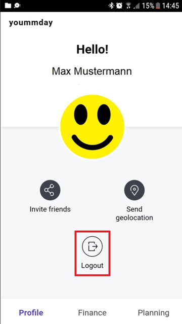 Hier kannst Du Dich aus der App abmelden. Bitte beachte, dass Du dann wieder den QR-Code in Deinem Profil scannen musst um Dich erneut in der App einzuloggen.