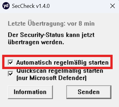Muss ich den Security Checker immer manuell starten? Kann ich die Daten automatisch versenden lassen?